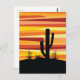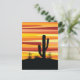 Ilustração do pôr do sol do deserto abstrato geométrico com riscas diagonais amarelas, laranja e vermelhas e decoração de cacto. Adicione o seu nome/monograma ou elimine o texto.