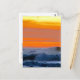 Este belo cartão postal mostra uma espetacular e colorida fotografia do pôr do sol tirada de uma praia pacífica em Ocean Shores, Washington. Camadas de nuvens dão a impressão de uma pintura de abstrato. As matizes cor de laranja, cinza, azul e amarelo são calafrios e inspiradoras. A aldeia da Ocean Shores veste quilômetros de praias arenosas suavemente inclinadas.