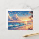 Cartão Postal Sol sobre praia tropical com golfinhos e mar