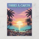 Um pôr do sol tropical vibrante sobre o oceano em Turks e Caicos, com palmeiras silenciadas a enquadrar a cena.