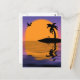 Cartaz de um pôr do sol tropical com um pássaro, uma palmeira e uma flor numa ilha na água. Uma continuação perfeita para a série Flamingo Sunset.