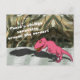 Arte original do desenho animado rosa do dinossauro T-Rex com sombra longa sobre fundo de vinha verde. Texto branco: Sempre há algo ao virar da esquina! Continue motivando por manter seu queixo em tempos horríveis.