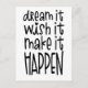 Envie a alguém palavras especiais de motivação com esta design tipográfica divertida com a inspiradora citação Dream It Wish It It Done in a funky font style In black.