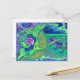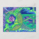Cartão postal com pintura surreal - "Sonho da Lua de cheio". Fantasia subaquática em cores azuis, verdes e roxas. Espírito de água se fundindo com o gigantesco peixe verde na paisagem marinha surrealista com ondas enormes, lua de cheio e céu estrelado. © Clipso-Callipso/Julia Khoroshikh www.juliakhoroshikh.art #underwaterart #magicrealismo #fantasyart #contemporaryfantasia #mermaidart #mermaids #nMaritime#zazzlemade #postcard #postais