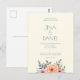 Vamos dá vida à sua história de amor com o nosso convite de "Peach and Petal Dream". Este design apresenta uma mistura suave de florais de cor-de-rosa suave e cor-de-água pêssego, criando um sentimento romântico e elegante. As flores delicadas estão organizadas graciosamente no fundo do cartão, perfeito para um casamento de jardim ou primavera. Trabalharemos com você para personalizar o texto e o layout, assegurando que cada detalhe seja exatamente como você previu.