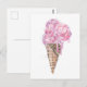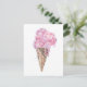 pintura aquosa tradicional de um cone de sorvete cremoso com três grandes bolas de sorvete aromatizado de morango num cartão postal