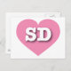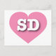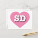 Este cartão postal apresenta um legal coração cor-de-rosa contendo as letras maiúsculas brancas em negrito SD, a abreviação oficial para South Dakota, o estado de Monte Rushmore. O reverso do cartão postal é vazio, aguardando seu texto personalizado ou sentimentos escritos à mão.