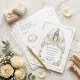 Conmemora tu fecha especial con esta encantadora postal "Reserva la Fecha", que presenta una imagen clásica de la Virgen María adornada con una corona de luz y enmarcada por una exuberante guirnalda de rosas y follaje. Este diseño es una hermosa fusión de devoción religiosa y celebración romántica, ideal para parejas que desean incorporar su fe en la papelería de su boda. Los intrincados detalles florales y la sutil iconografía religiosa, como el rosario y la cruz, le confieren un aire de gracia atemporal y significado espiritual. Es una tierna manera de pedir a tus invitados que "Reserven la Fecha" al comenzar su vida matrimonial juntos, bajo la atenta y amorosa mirada de la Virgen María. Este anuncio sirve como un hermoso testimonio de su amor y compromiso, estableciendo un tono sagrado y elegante para las celebraciones de su boda. Que este diseño sea el primer paso en su camino hacia un matrimonio bendecido.