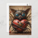 Um gato aranha estranho segurando um coração vermelho de vidro com teia dourada e emblema de aranha nele gerou pintura