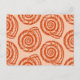 Cartão postal num padrão de impressão de bloco, baseado numa concha espiral, em laranja coral profundo numa laranja de coral pastel/fundo de damasco