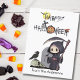 Mande saudações de Halloween assustadoras e caprichosas com este cartão postal de Halloween fofo! O design apresenta um belo e brincalhão Cemitério caminhando por um cemitério assustador, sua foice na mão, enquanto um corvo preto se estende sobre um crânio. pop "Feliz Dia das Bruxas" em estilo festivo com uma abóbora Jack-o-Lanterna, um chapéu de bruxa, teias de aranha, uma lua amarela brilhante com um morcego lisonjeiro, e um fantasma assustador, a mistura perfeita de charme divertido e arrepiante. Faça-o seu: personalize com seu nome, endereço ou uma mensagem personalizada. Ajuste fontes, cores e layout para corresponder à sua vibração exclusiva assustadora. Perfeito para cumprimentos de Halloween, diversão assustadora de crianças, e colecionadores de designs góticos fofos. Entre em contato conosco para obter mais personalizações antes de fazer um pedido. Obrigado por visitar nossa loja. Copyright Soar Em Designs De Estilo.