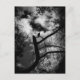 Foto em preto e branco de um Raven em uma árvore morto. Fotografado perto de Mariposa, CA