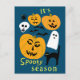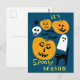 Cartão Postal Spooky Season Pumpkins Ghost Bat HELLOWEEN