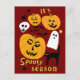 Cartão Postal Spooky Season Pumpkins Ghost Bat HELLOWEEN