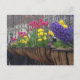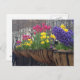 Cartão postal apresenta uma fotografia original de uma caixa de janela de flores coloridas plantadas no início do primavera na praça Greeley, no centro de Manhattan, Nova Iorque.