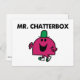 O Sr. Chatterbox está acenando olá, sua boca aberta e pronta para nos conversar sobre as notícias do dia ou qualquer outra coisa que lhe venha à mente. Com a forma e o velho telefone rotativo, o Sr. Chatterbox pode falar, falar e falar até que os seus ouvidos estejam cansados de ouvir. Tente não ser apanhada numa conversa com o Sr. Chatterbox e a sua irmã, Pequena Miss Chatterbox. Você nunca vai chegar em casa!