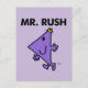 O Sr. Rush está com muita pressa para chegar a algum lugar. Suas pernas estão se rebolando e seus braços estão balançando. Infelizmente, o Sr. Rush sempre se move muito rápido e não completa seus objetivos corretamente, até que finalmente se torne um entregador de correio expresso. Este personagem divertido do Roger Hargreaves criou o universo do Sr. Men é um lembrete excelente para levar a vida um pouco mais devagar ou podemos perder os detalhes importantes.