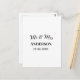 Cartão Postal Sr & Sra adicionar sobrenome data ano lembrancinha