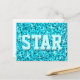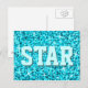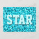 Cartão postal com um design moderno com estrelas dispersas sobre um fundo estilizado de "aparência sequencial" e "STAR" em tons de azul. Pode ser usado como um fundo para o seu próprio texto, imagens e ideias. Observe que esta é uma imagem de arte digital impressa, ela não brilha ou contém cinzas ou sequências reais.