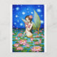 Linda sereia de peixes koi na lagoa cercada por lírios e estrelas acima.