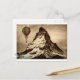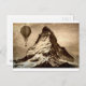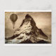 Um balão de ar quente estilo Steampunk flutua através da montanha Matterhorn. Arte digital na sepia