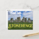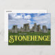 Postkarte Stonehenge in England mit gelben Schriftzug