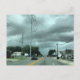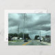 Um carro descendo uma rua vazia com uma tempestade chegando.