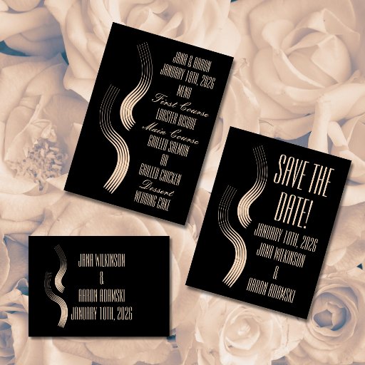 Cartão Postal Streamline Moderne Beige-on-Black Salvar a Data