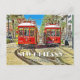 New Orleans Streetcars apresenta uma imagem de viagem de arte retrô antiga que mostra os famosos bondes vermelhos de Nova Orleans.