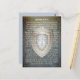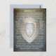 Decorre seu espaço com palavras elevatórias com este cartão postal Bíblia versátil totalmente personalizável. Este design apresenta um escudo prateado e dourado com uma cruz sobre um fundo brilhante de cinza. O texto padrão contém os versos Ephesianos 6:11-18 no impressão branco padrão. Os versos são a famosa passagem "Coloque a armadura do cheio de Deus". O verso da placa é uma cinza de luz padrão. Este cartão postal é totalmente personalizável. Basta pressionar o botão Personalizar para alterar o texto/verso ou pressionar o botão Editar para alterar a fonte, a cor do texto ou a cor do lado inverso, se desejar. Faz um excelente de inspiração ou decoração. Excelente para amantes de Deus, fé, espiritualidade, versos Bíblias, escudos, blindagem e mensagens inspiradoras da Bíblia.