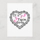 Cartão Postal Suas Garotas Gêmeas Pegadas Rosa Corações