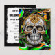 Convite Personalizado para Festa de Halloween. Crânio de açúcar preto, laranja e azul convites para cartão-postal do Dia das Bruxas.
