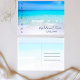 Uma cena oceânica de praia de verão. Água azul e areia branca com as palavras Obrigado, que pode ser mudada por um nome ou removida. Altere facilmente o modelo para suas informações. Exibir a coleção via link na página.