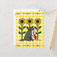 Cartoon Labrador Retriever Dog Whimsy e engraçado criado por Naomi Ochiai do Japão. Dons de diversão excelente para amantes de cães que amam Labradores Negros. Um adorável Black Lab Puppy está esperando sua mãe no jardim esperando uma carona? Três girassóis encantadores estão no fundo. Cenário de verão. Você pode personalizar texto e muito mais!