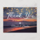 A corda de praia do pôr do sol elegante ilumina o obrigado de casamento de verão que você faz cartão-postal. O texto pode ser alterado utilizando o menu "Detalhes" à direita. Para ajustado de tudo para as suas necessidades, clique no botão "Personalizar" e você pode alterar o estilo do texto e a cor do papel. Outras cores estão disponíveis. Você pode alterar o tipo de papel no lado direito do menu "Comparar Documentos". Entre em contato comigo se precisar de ajuda ou itens correspondentes.