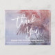 Este obrigado solar tropical que você faz é perfeito para um casamento de destino ou praia. O design apresenta um pôr do sol roxo, púrpura e azul impressionante, cor de água, completo com uma palmeira soprando na brisa. Personalize a frente da placa com uma mensagem curta. Personalize as costas com uma mensagem de obrigado mais longa. Como alternativa, deixe a seção modelo de mensagem do obrigado da da mensagem no vazio traseiro para escrever uma nota personalizada refletida em cada cartão postal depois que eles chegarem. Estes cartões postais podem ser usados para o chá de panela, casamento ou qualquer evento especial.