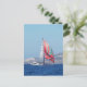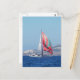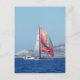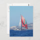 Iate de navegação superior que voa com uma espinafre vermelha e cinza ao largo da costa da Sardenha.