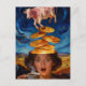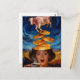Cartão Postal Surreal Surprised Breakfast Pancakes Coffee Cow
