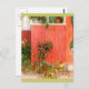 Imagem colorida de uma garotinha espreitando sobre uma janela, até o exterior. Trabalho de arte sueco em vermelhos, amarelos e verdes.
