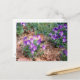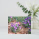 O cartão postal design apresenta uma fotografia da Borboleta Negra Swallowtail em flores de Viola.