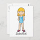 Essa garota bonita está pronta para mergulhar na piscina! Ela está vestindo seu azul favorito com roupas brancas de banho e flip-flops cor-de-rosa.