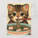 Cartão Postal Tabby Kitten Comendo Ramen Woodblock Impressão