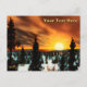 Inverno na taiga ártica. Com o sol no horizonte, a neve brilha e o céu queima laranja e amarelo. Personalize adicionando seu próprio texto.