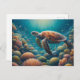 Cartão Postal Tartaruga marinha e coral