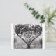 Imagem negra e branca de uma escultura em forma de coração de ferro moldada e uma mensagem de amor correspondente.