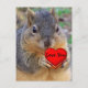 Esquilo segurando um coração vermelho. Você pode personalizar este produto.