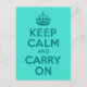 Cartão Postal Teal e Turquesa Manter Calmo e Continuar