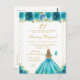 Cartão Postal Teal Floral Blonde Hair Princess Festa de aniversá