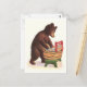 Urso de pelúcia limpa as roupas numa banheira com um punhal de roupas operadas à mão acoplado a uma ilustração antiga de um livro infantil de 1907.