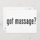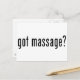 Foi movido depois daquela propaganda muito popular, temos um design super fofo "Get Massage?" em toneladas de produtos para que você possa usá-lo em seus cartões de visitas de massagem, cartas de agradecimento, ou presentes de cliente. Disponível em texto preto ou branco.
